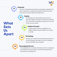 Welcome to Honeybelle Vue, we specialize in crafting eyewear as unique as you are. Our brand is dedicated to providing bespoke frames tailored to your exact specifications; from size and color to design preferences. With a focus on individuality and style, we aim to enhance your vision while reflecting your personal flair.